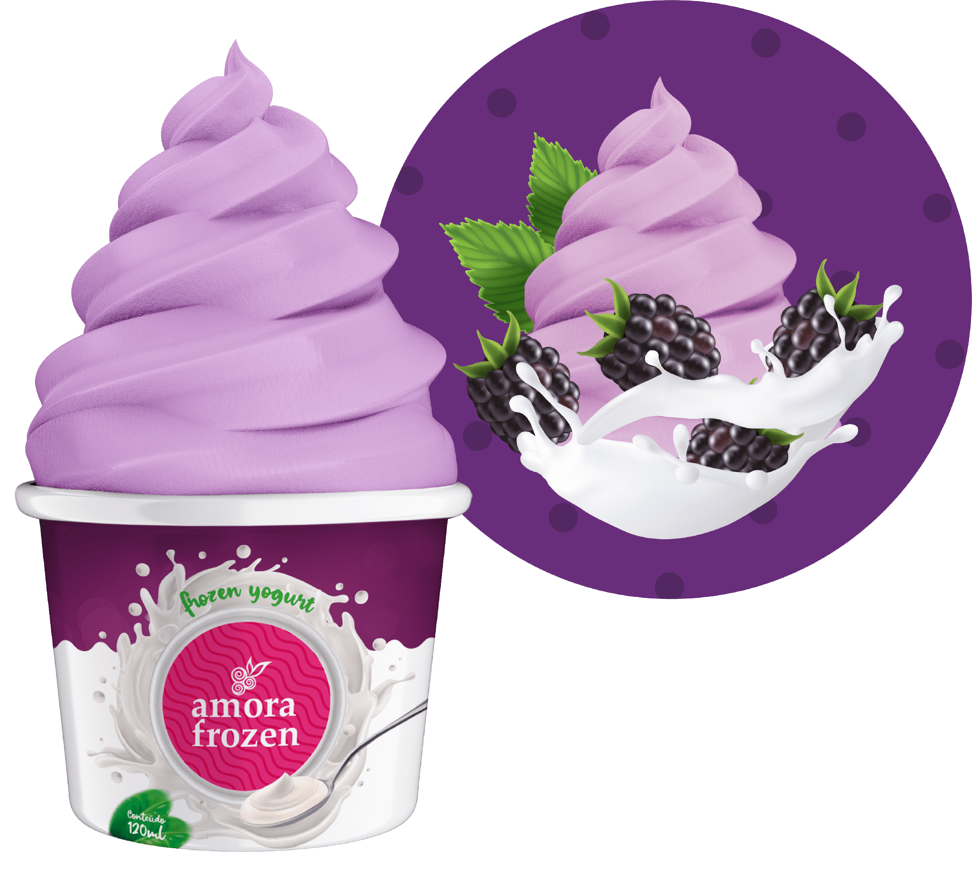 Feito com iogurte e Amora. Baixo valor calórico. Sem conservantes. Ideal para uma dieta saudável.